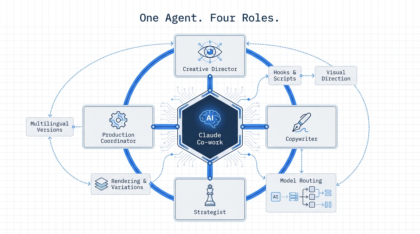 In a vibe advertising setup, Claude Co-work becomes all of these simultaneously: